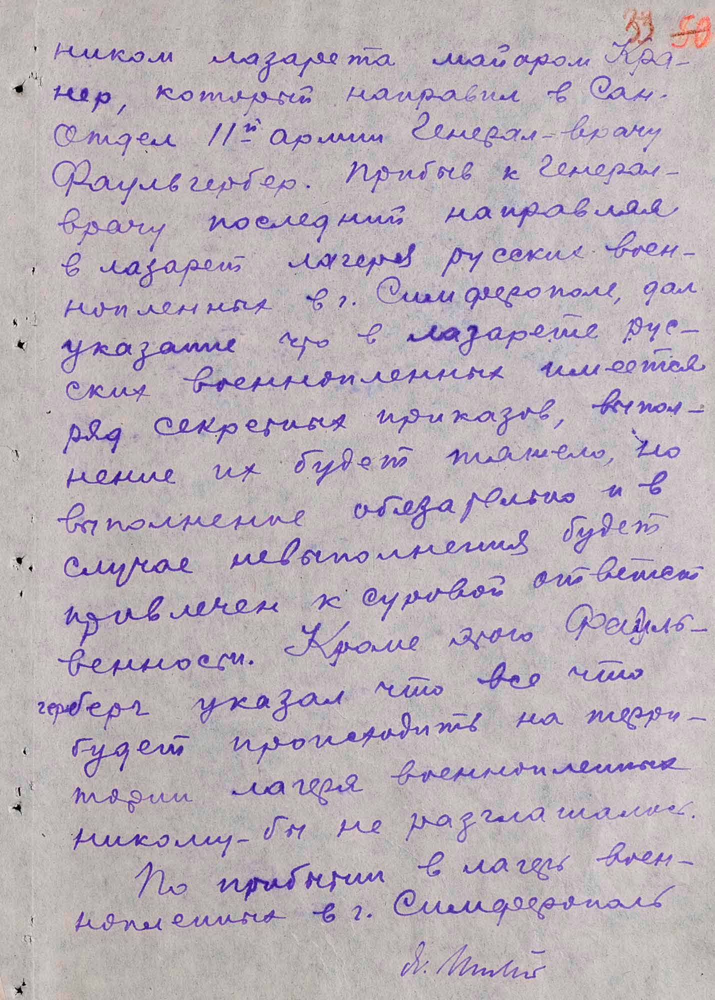 Через некоторое время после упомянутого выше совещания я получил из ставки приказ за № 10 или 11, в котором говорилось, что русских военнопленных следует расстреливать без всякого предупреждения при попытке с их стороны к побегу».