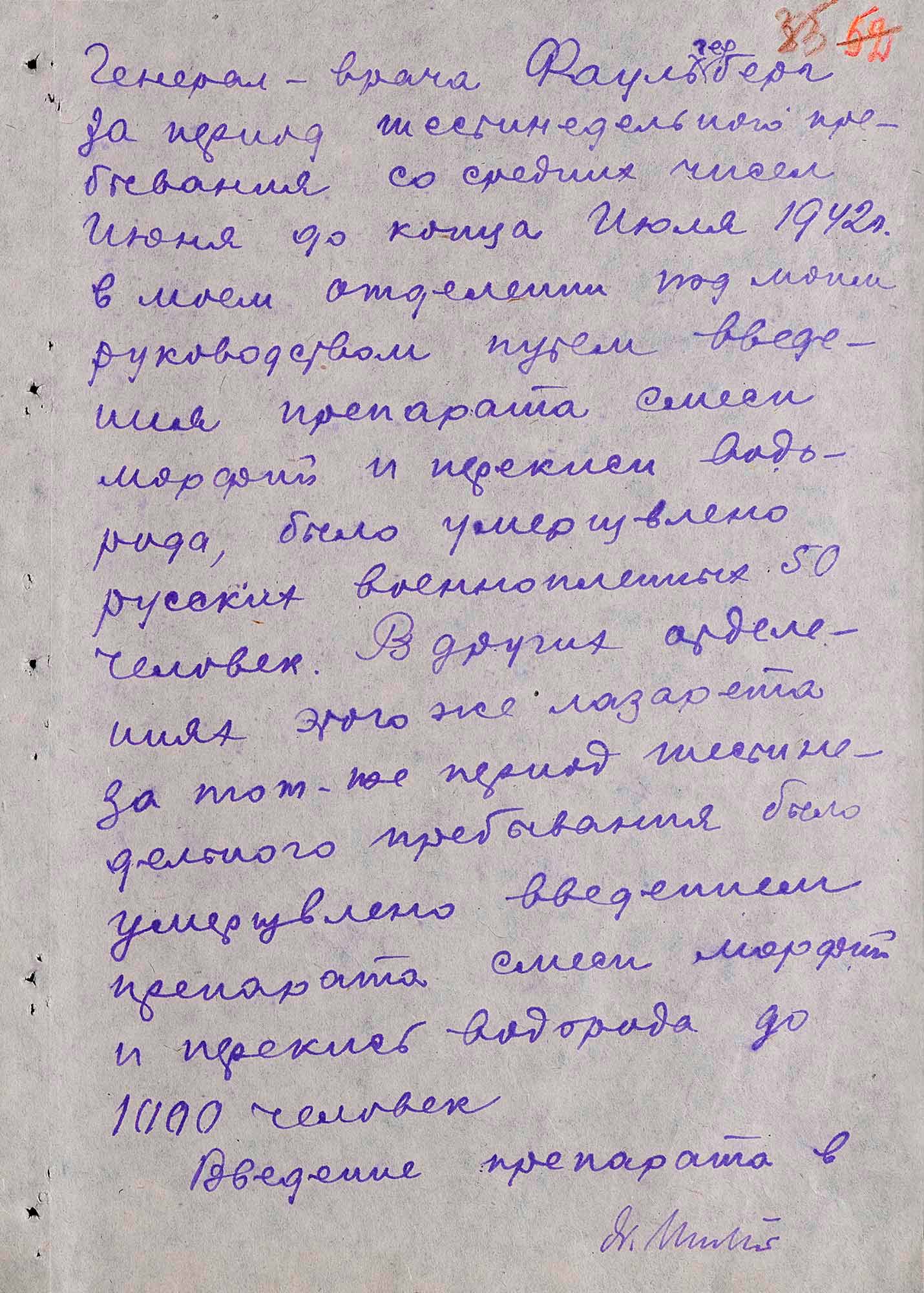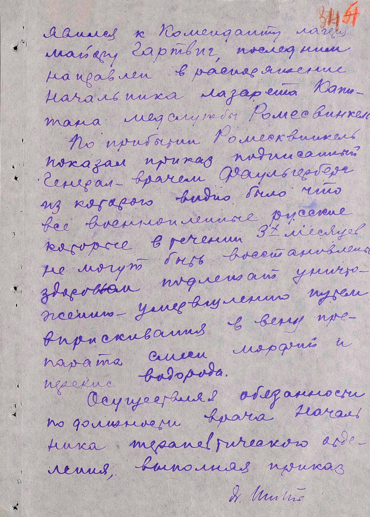 Вышеуказанные уколы ставились в хирургическом отделении в операционной палате. Немецкому персоналу уколы ставить было запрещено, согласно указанию генерал-врача 11-й армии Фаульгербер.