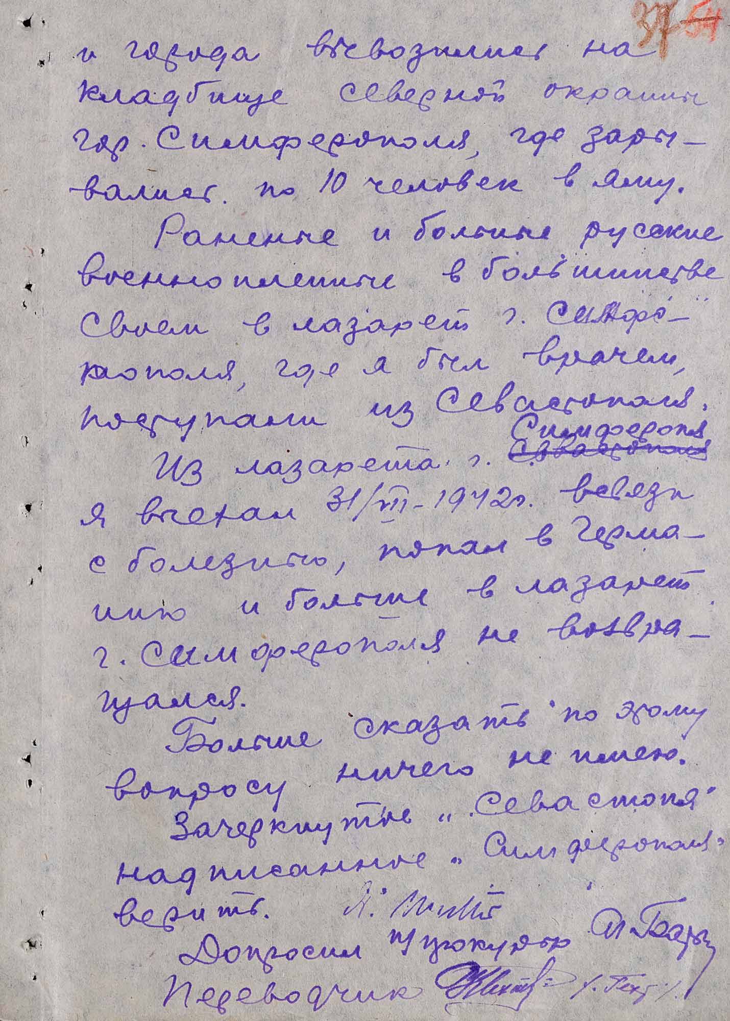 Во время того же допроса 21 ноября 1947 года Э. Мюллер дал показания о количестве умерщвленных советских военнопленных в Симферопольском лагере: