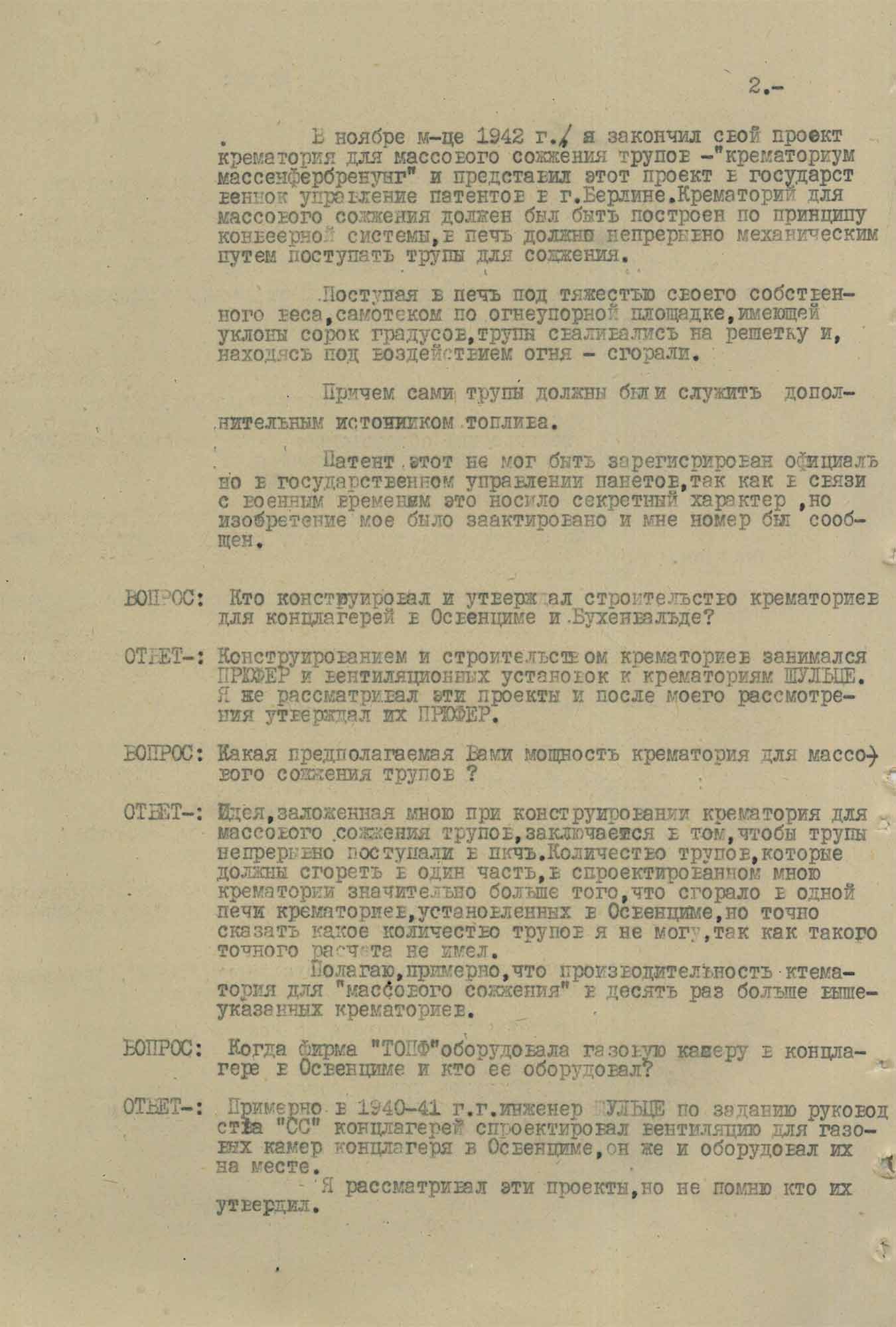 В ВОПРОСАХ УНИЧТОЖЕНИЯ ЛЮДЕЙ НЕМЕЦКИЕ ИНЖЕНЕРЫ КРЕМАТОРИЕВ И ГАЗОВЫХ КАМЕР СРАВНИВАЛИ СЕБЯ С САМОЛЕТОСТРОИТЕЛЯМИ