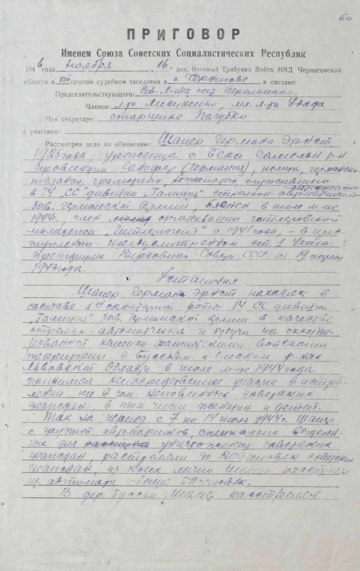 Приговор в отношении Шапера Г.Э. 16 ноября 1946 г.