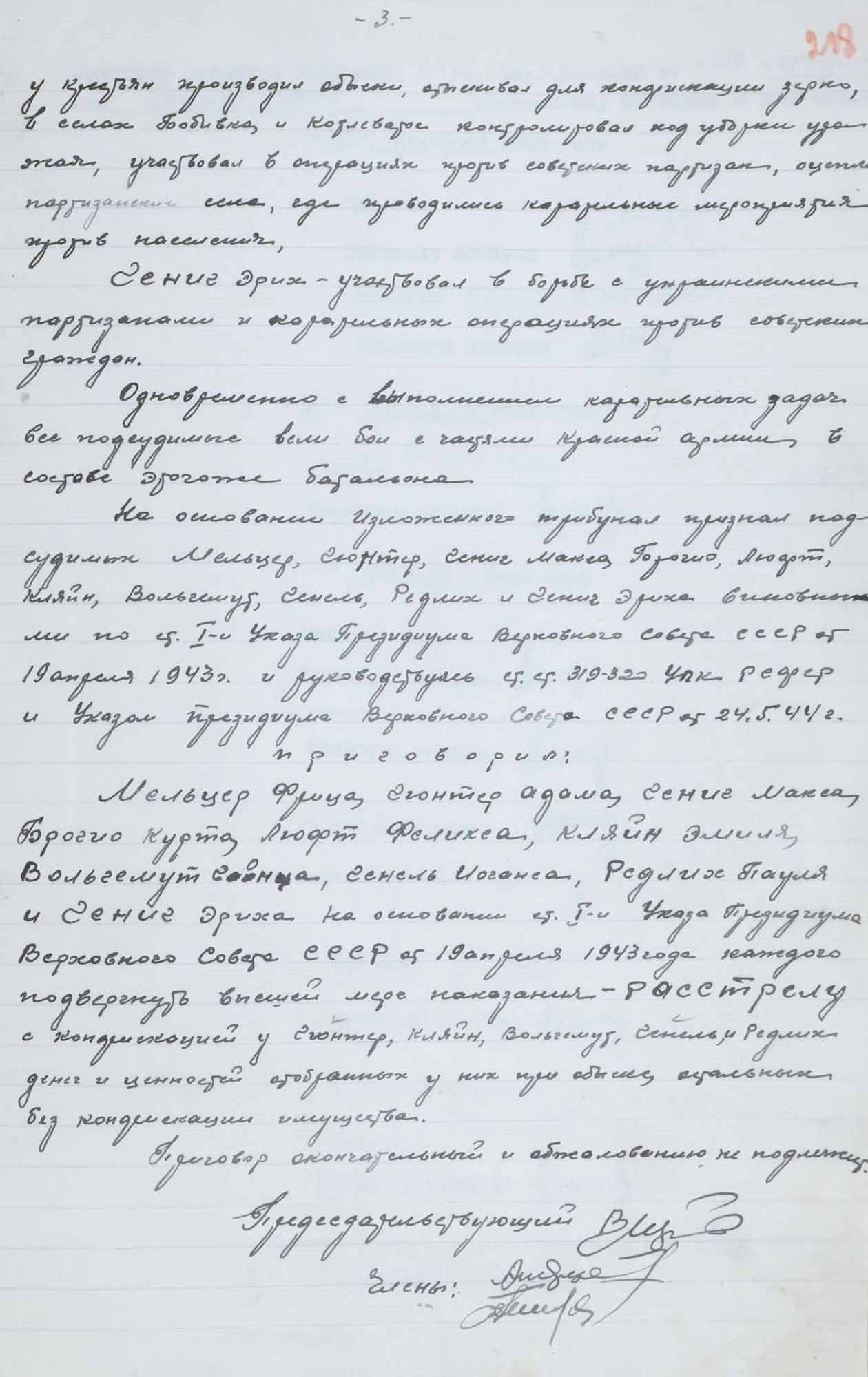 № 3. Приговор № 052 в отношении Мельцра Ф., Люфта Ф. и др. 25 февраля 1946 г.