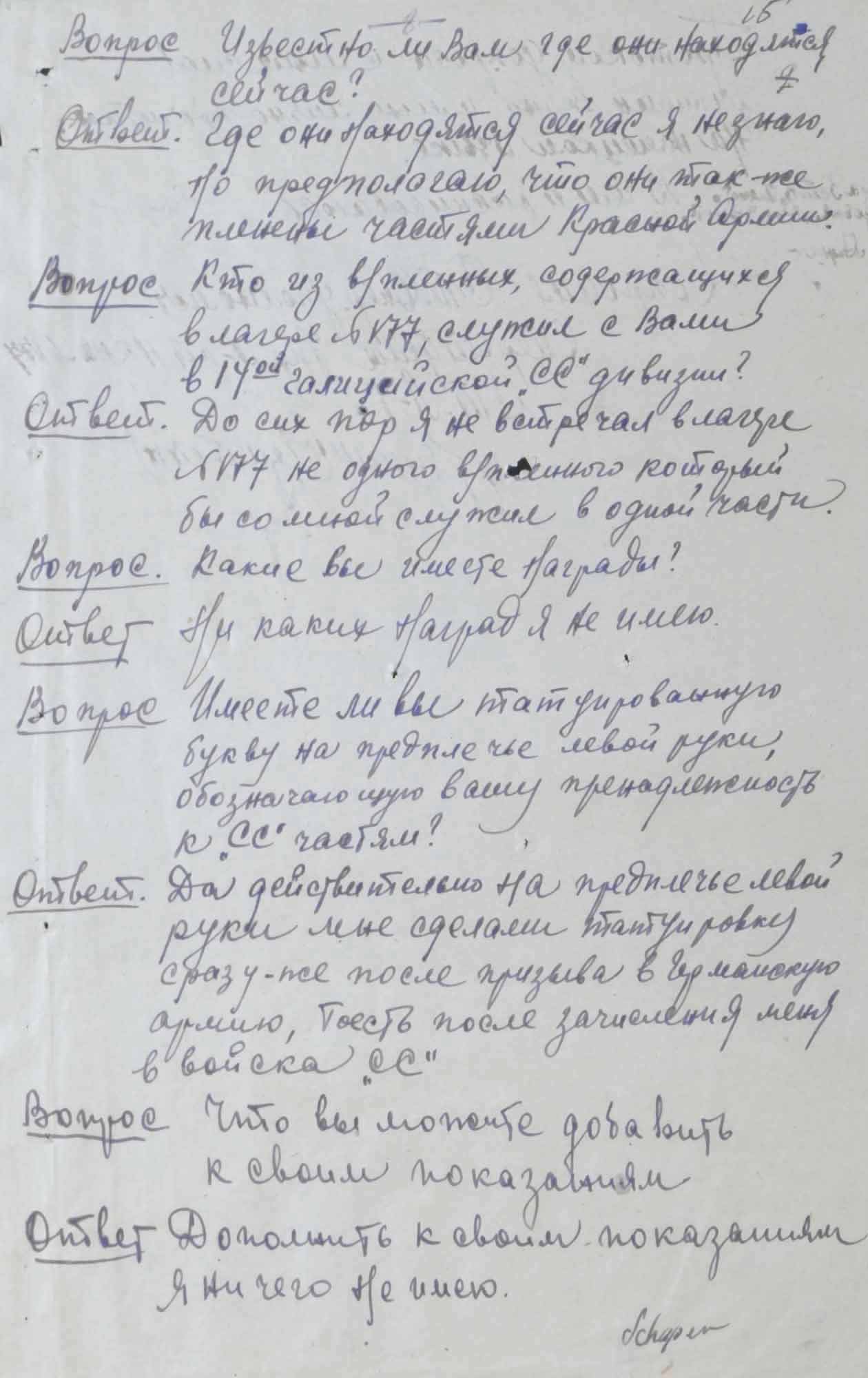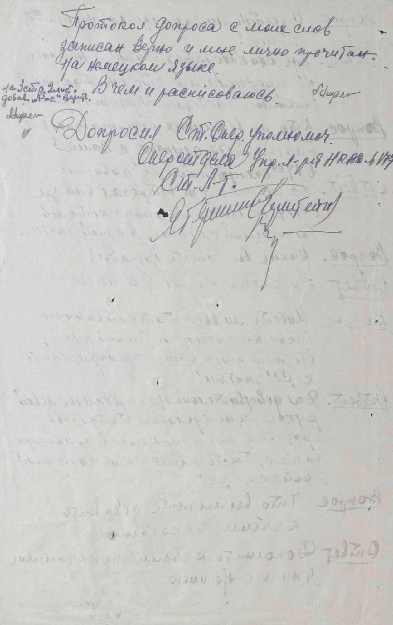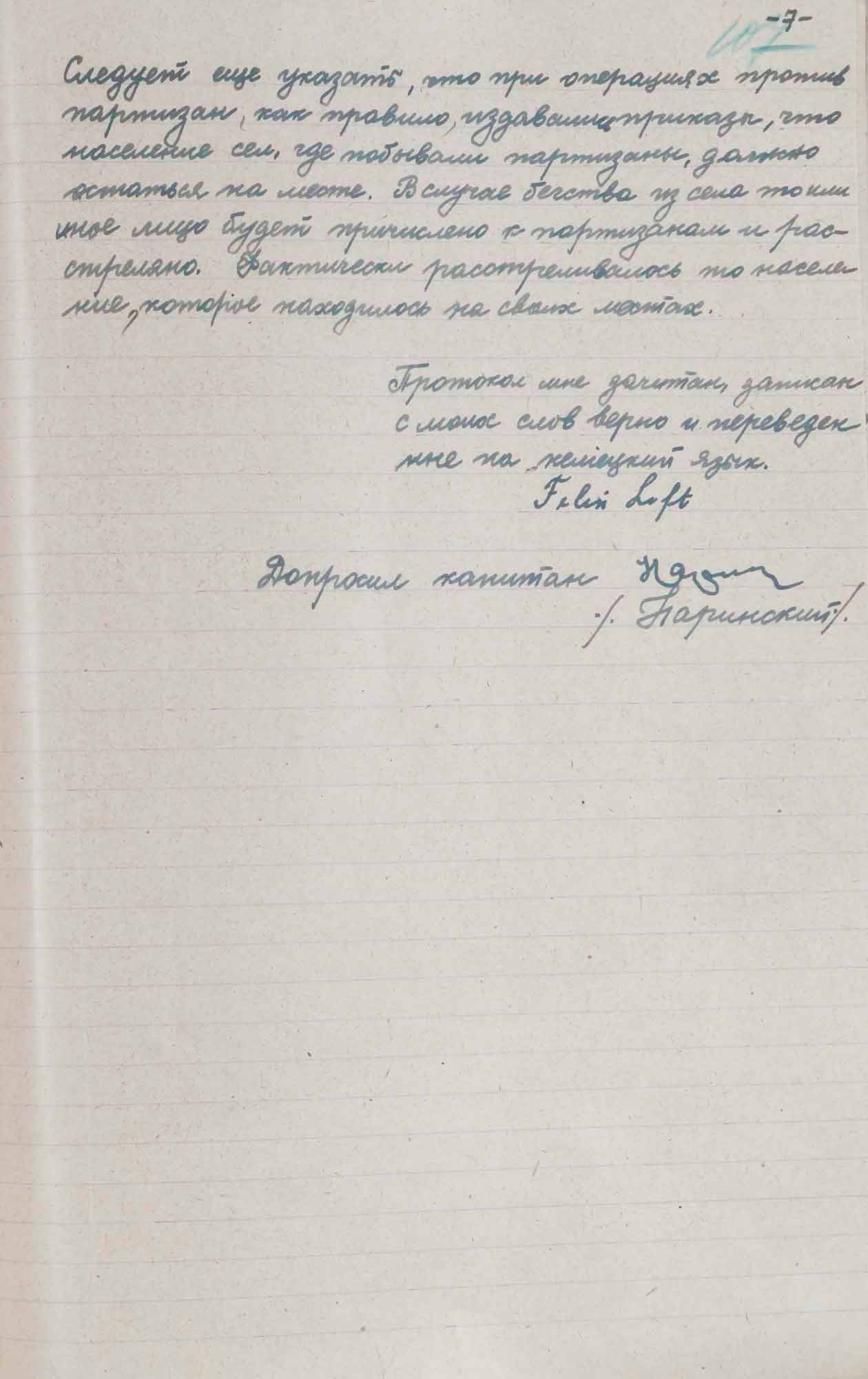 № 2. Протокол допроса Люфта Ф., бывшего полицейского 304 немецкого полицейского батальона. 1 октября 1945 г.