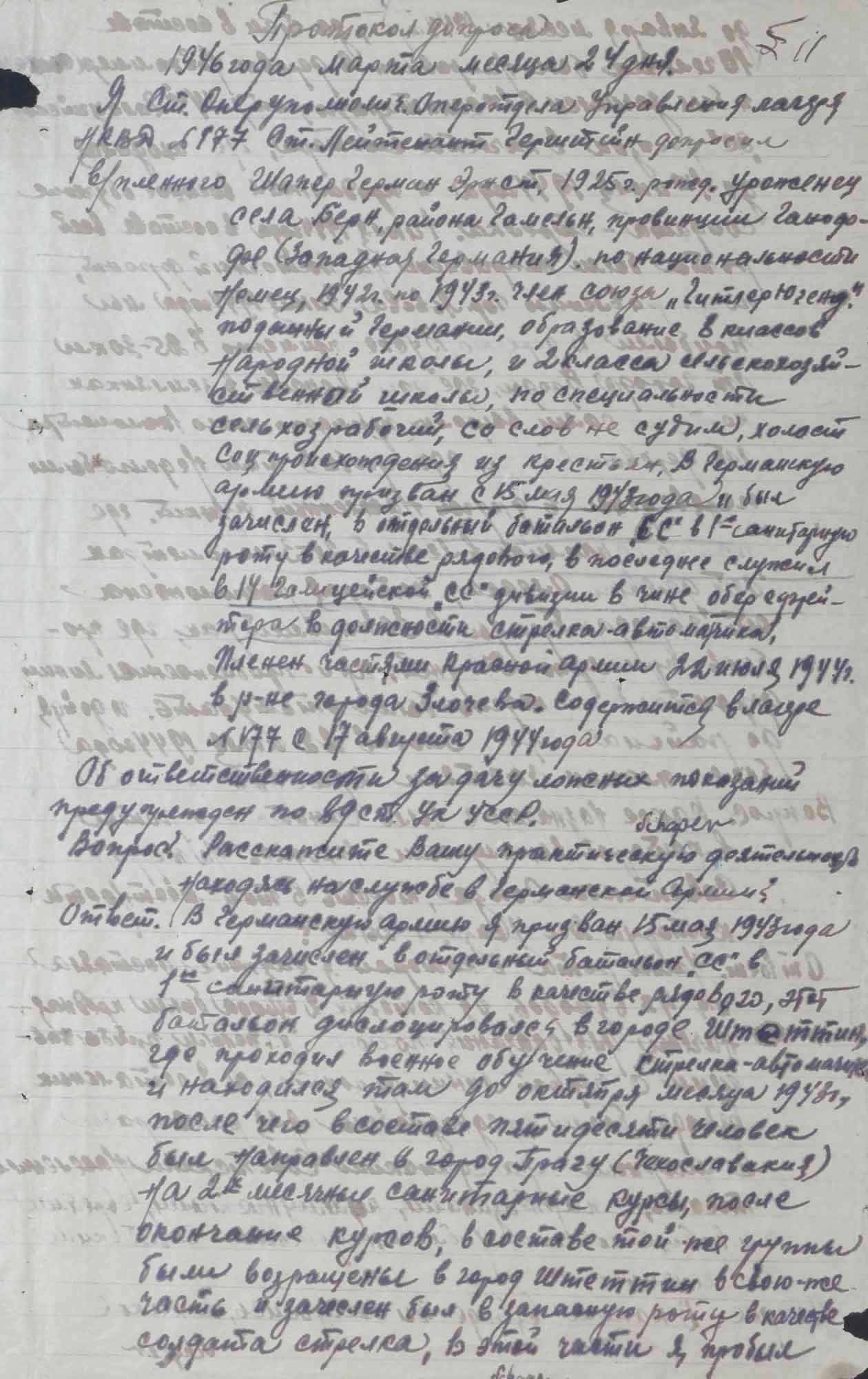 Протокол допроса Шапера Г.Э. 24 марта 1946 г.
