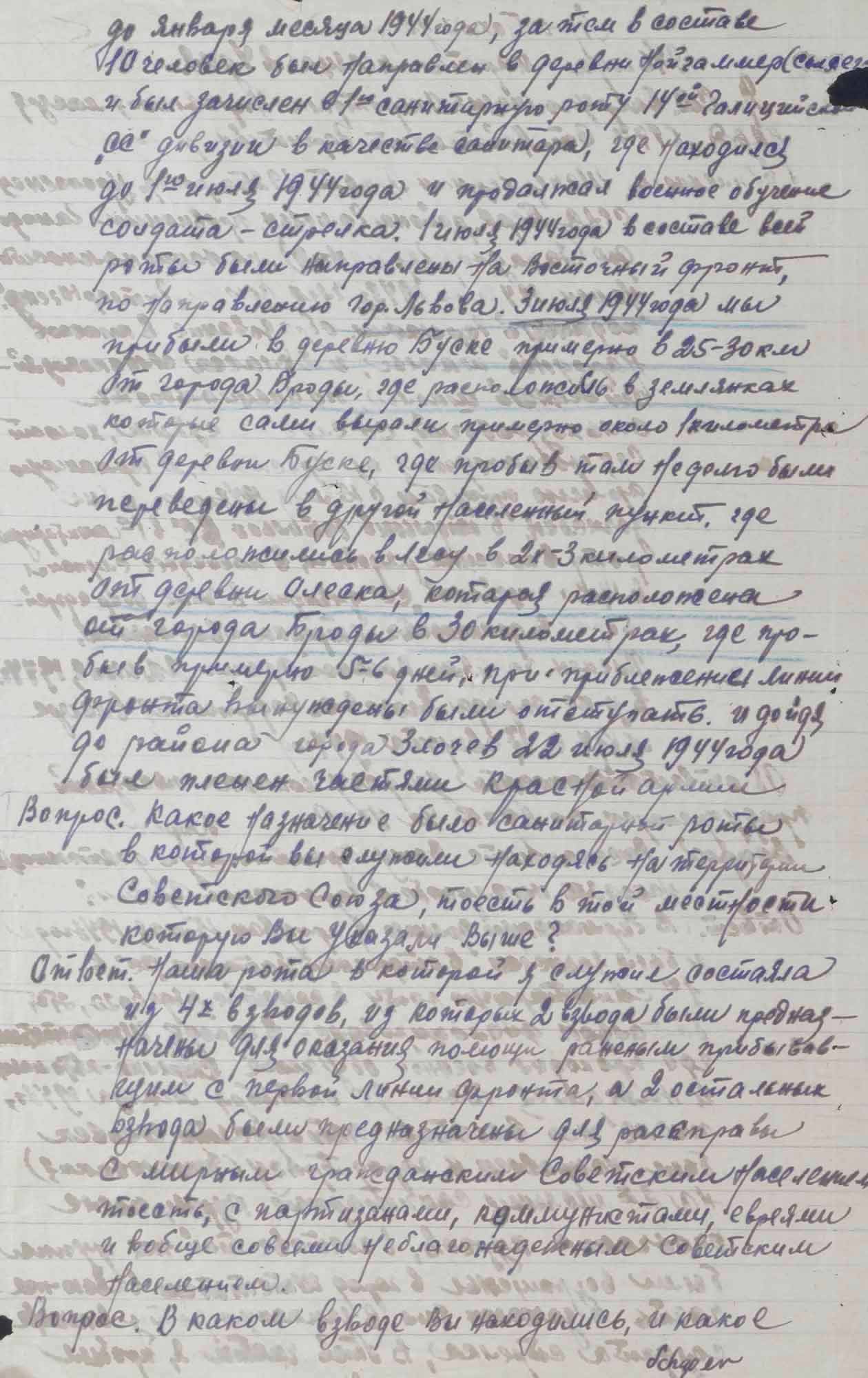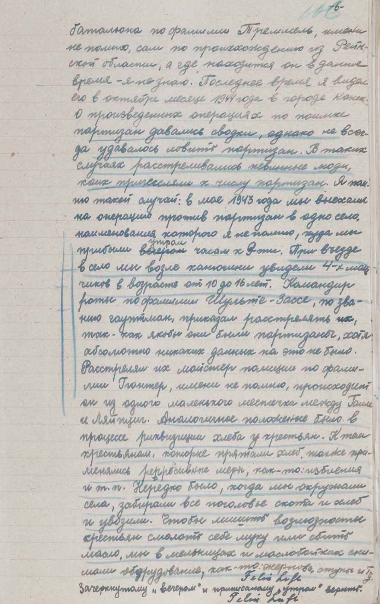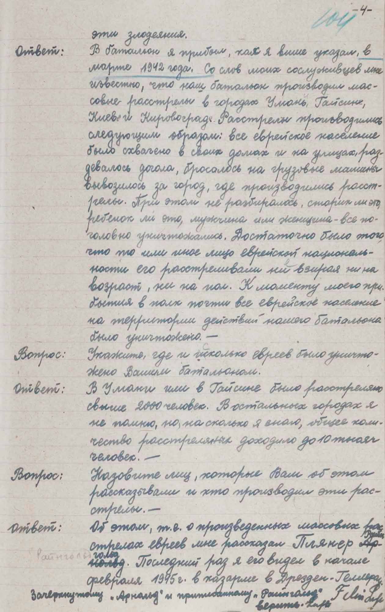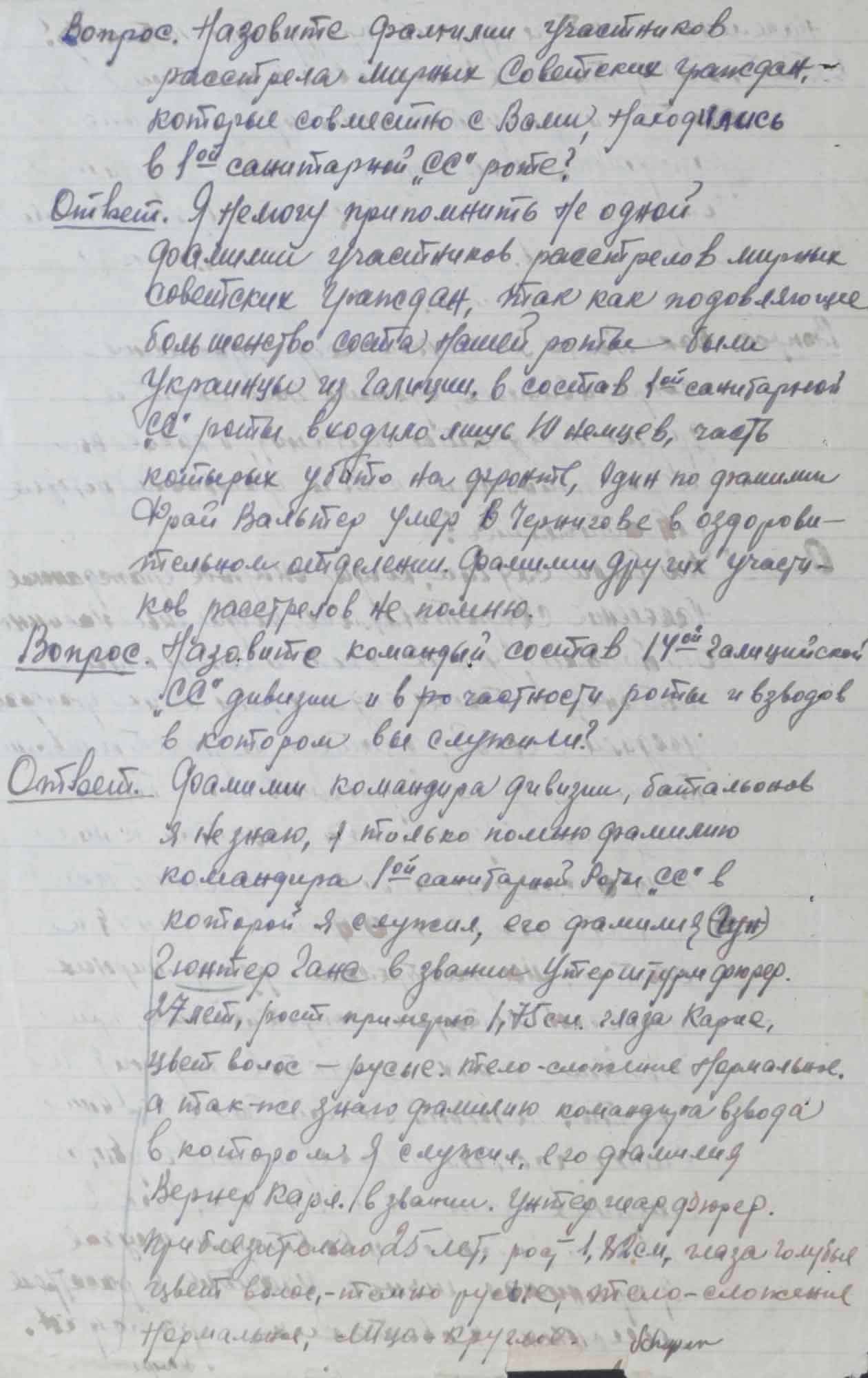 Протокол допроса Люфта Ф., бывшего полицейского 304 немецкого полицейского батальона. 1 октября 1945 г.