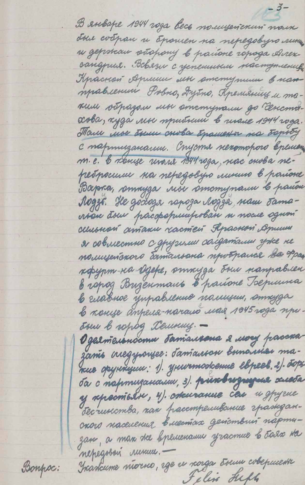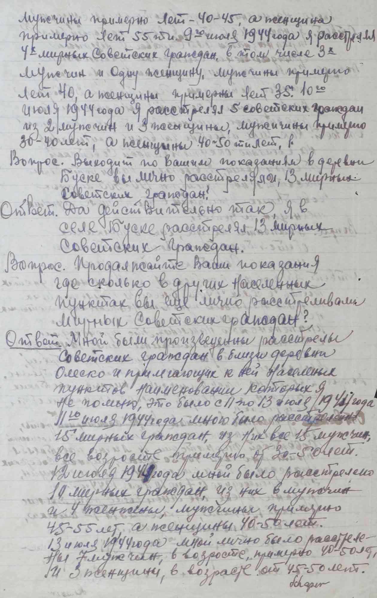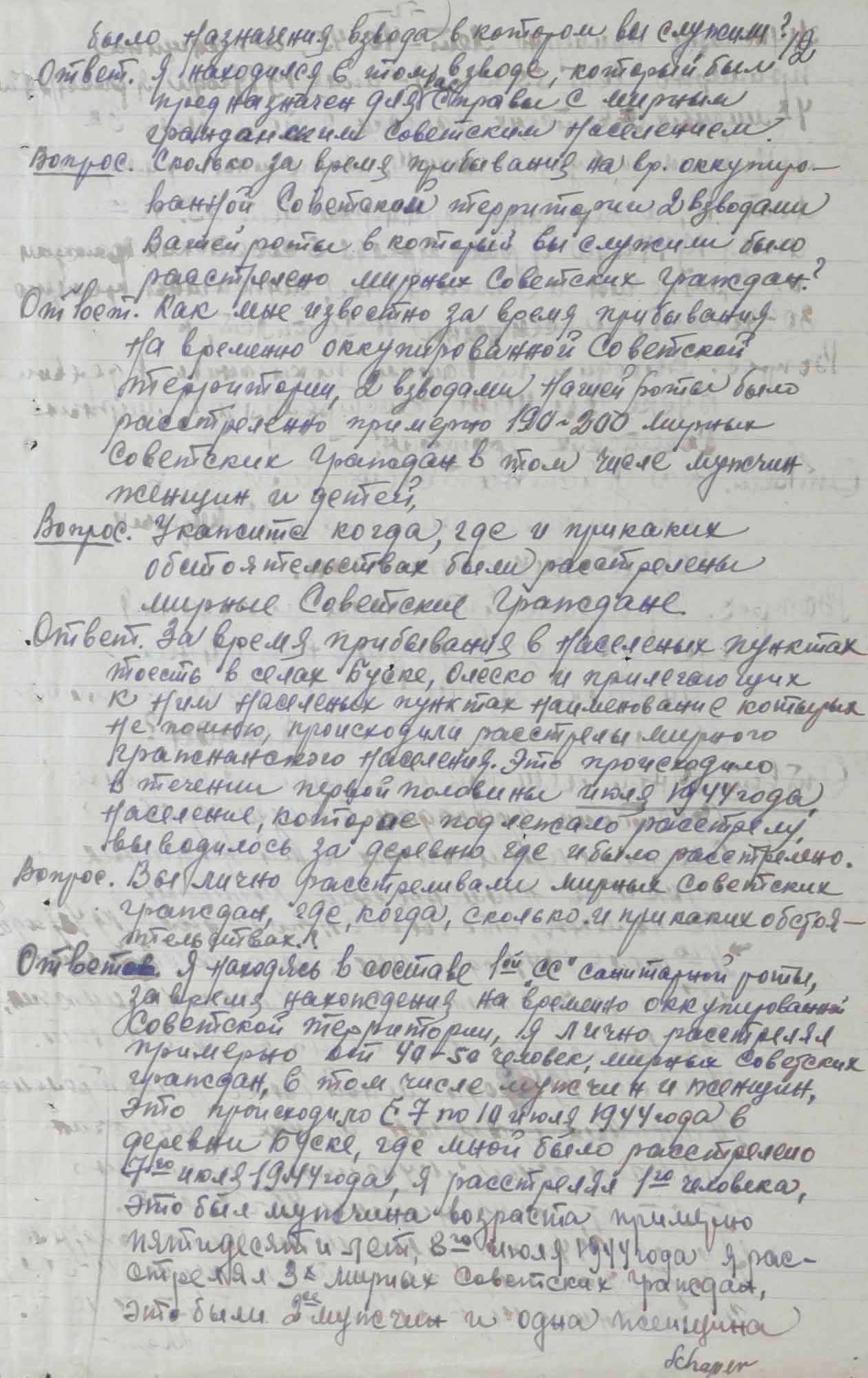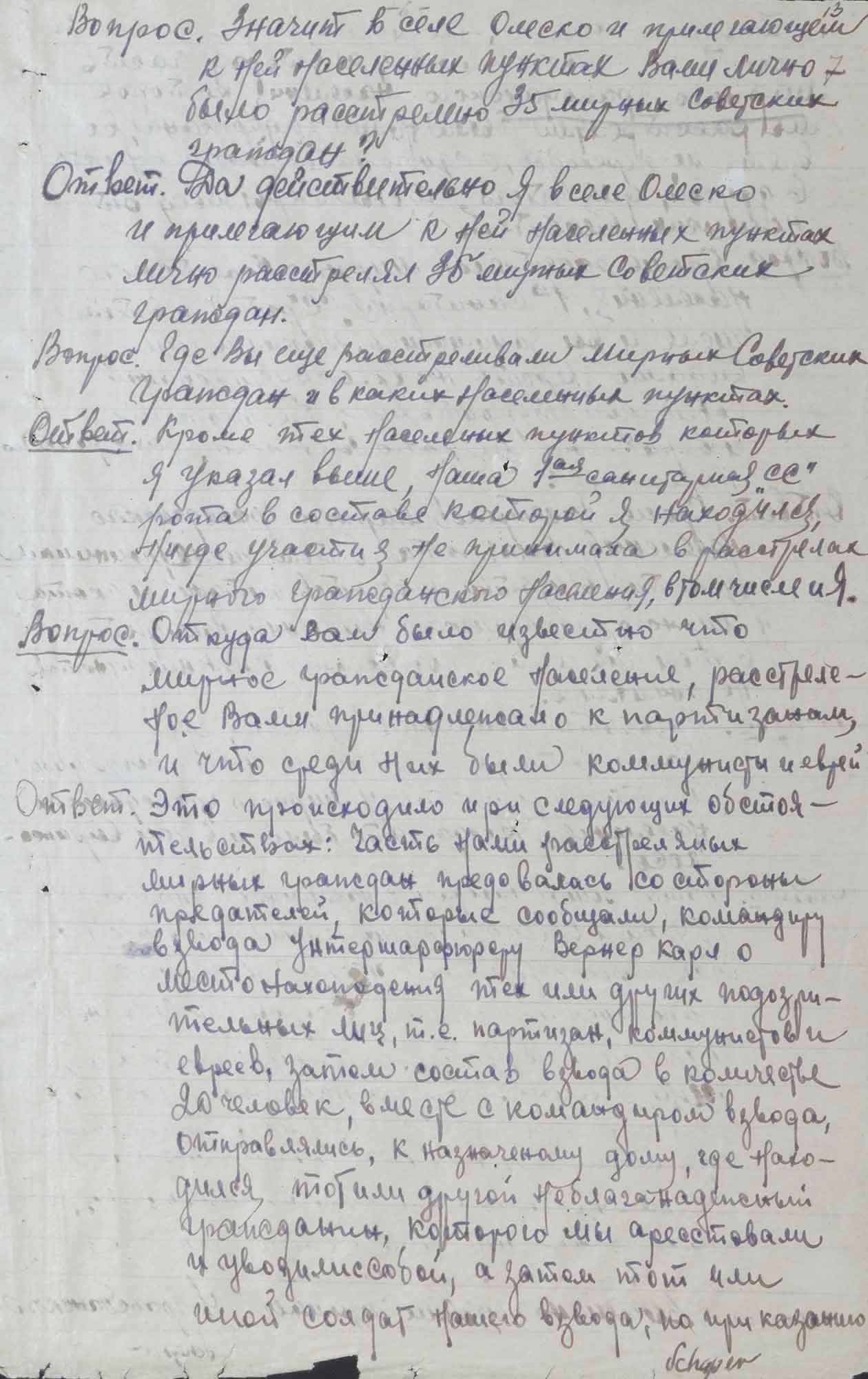 Протокол допроса Люфта Ф., бывшего полицейского 304 немецкого полицейского батальона. 1 октября 1945 г.