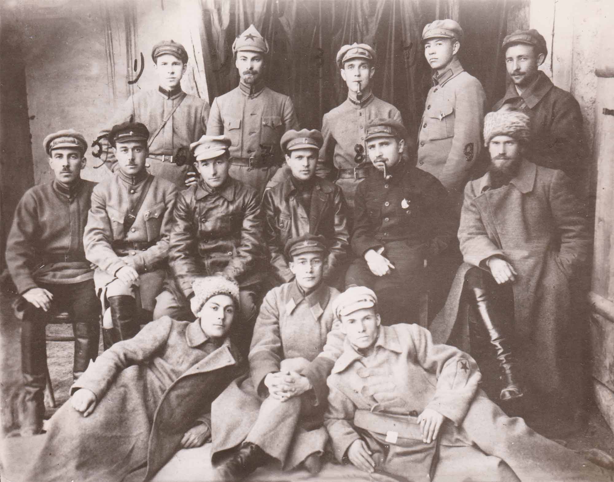 Личный состав Особого отдела 4-й Туркестанской стрелковой дивизии 13-го корпуса. Н.Н. Селивановский – второй слева в третьем ряду (отмечен цифрой «2»). Каган, Узбекская ССР, 1924 г.