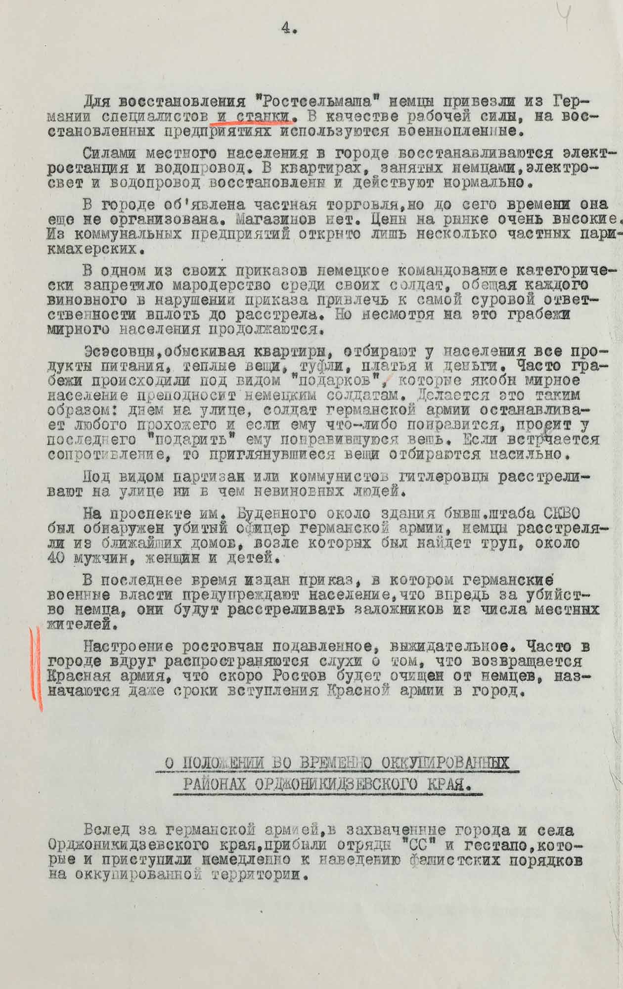 «Пребывание немцев на оккупированной территории сопровождается террором и издевательствами над мирным населением [...]